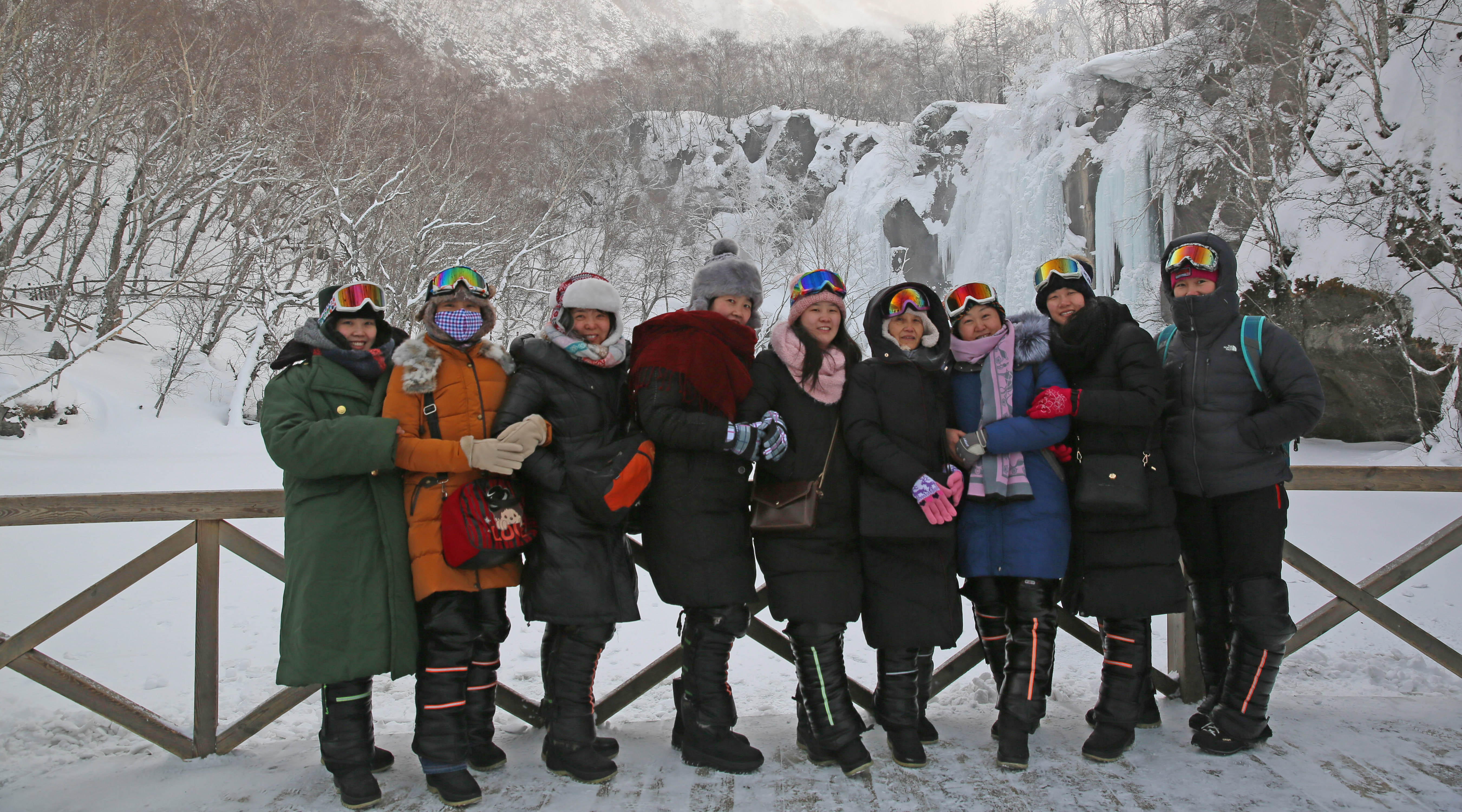 23日当地气温低至零下40℃,热情高昂的员工冒着严寒组团前往长白山北坡进行环山游览,观光冰天雪地里的天池美景。也有部分员工选择在度假区享受独特的雪地户外温泉,品尝富有东北特色的农家柴火炖。