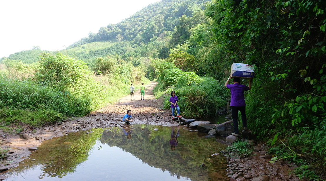 4月29日,志愿者们携带第二批爱心物资,走访帕雅普玛。这里是一个鲜为人知的世外贫困村,距磨憨镇十余公里,进村的道路是一条崎岖的羊肠盘山土路,没有手机讯号。村里有二十几户人家,户户家徒四壁,看不到可称之为“现代”的东西。全村饮水仅靠一口老井,水从树根和土里冒出,没有净化装置,水质混浊不清、异物漂浮,村民直接饮用。志愿者们在捐赠过程中感慨万分。